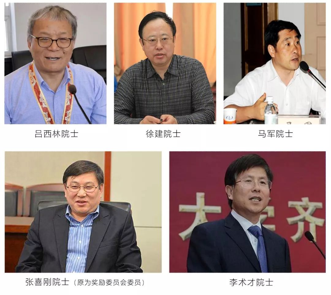新增的五位院士分别为同济大学吕西林院士、中国机械工业集团有限公司总经理徐建院士、中交股份有限公司总工张喜刚院士(原为奖励委员会委员)、哈尔滨工业大学环境学院副院长马军院士、山东大学副校长李术才院士。