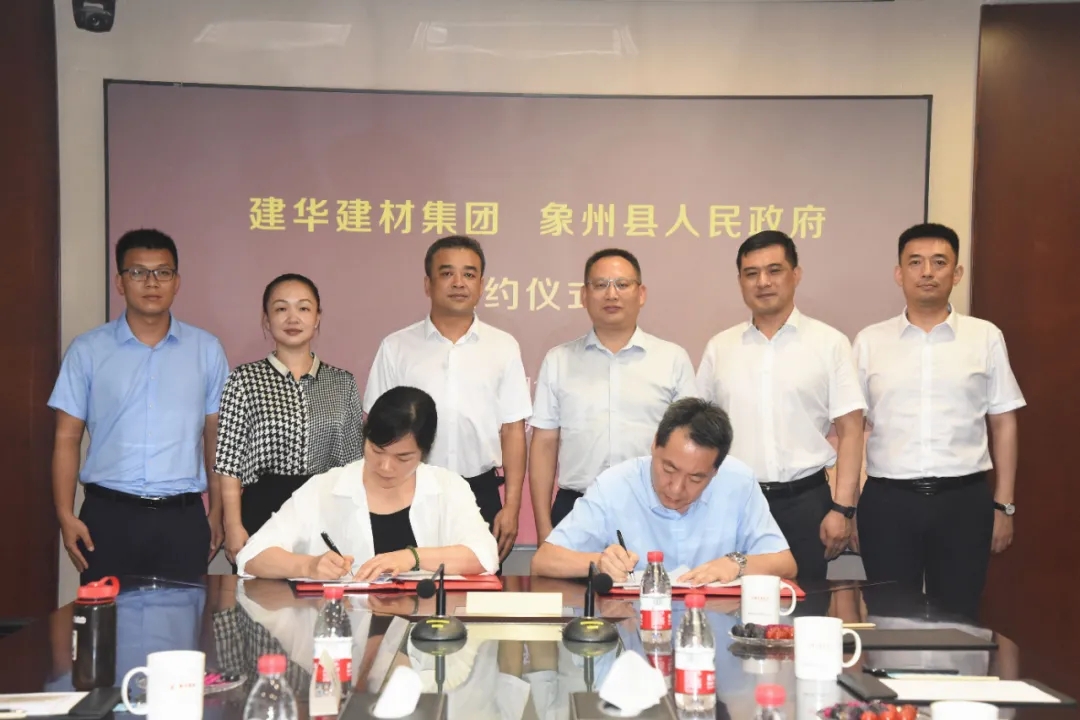 7月13日,建华建材集团(以下简称建华建材)与象州县人民政府举行绿色装配式建筑产业基地项目签约仪式。中共象州县委副书记、县长韦涛,副县长黎裕宁,县投资促进局局长银玲,县住建局副局长罗统;建华建材集团总裁何海平,总裁助理兼投资发展办主任汪峰,广西建华总经理胡敬阳,投资发展办副总监杨元等领导出席了签约仪式。