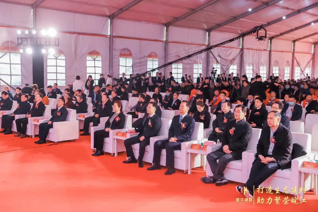 安徽省政协副主席孙丽芳及安徽省归国华侨联合会党组书记、主席李世蕴,省政协港澳台侨和外事委员会副主任王信,国际徽商交流协会常务副会长周富如,省水利学会理事长蔡建平,省公路学会理事长罗宁,省侨商联合会会长朱华,省侨联副主席兼秘书长杨冰等人士;芜湖市政府副市长贺东,芜湖市政协副主席陆雷,芜湖市水务局局长王津华等芜湖市相关部门人员;繁昌区委书记向继辉,繁昌区委副书记鲁先贵等繁昌区相关部门人员莅临庆典仪式,建华建材集团董事长王刚,总裁何海平,浙皖区域总经理张旭等领导陪同出席仪式并共同剪彩。