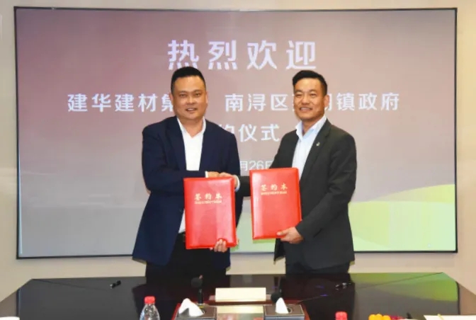 近日,建华建材集团(以下简称建华建材)与湖州市南浔区菱湖镇人民政府举行装配式建筑产业基地项目签约仪式。菱湖镇党委书记沈其民,党委副书记许跃平,南浔区商务局党组成员赵晓武,南浔区驻上海招商二局局长金江兰,招商办主任吴斌;建华建材总裁何海平,建华物流集团总裁马通瑞,建华建材总裁助理汪峰、杨余明,上海区域总经理王卫民等双方领导出席签约仪式。