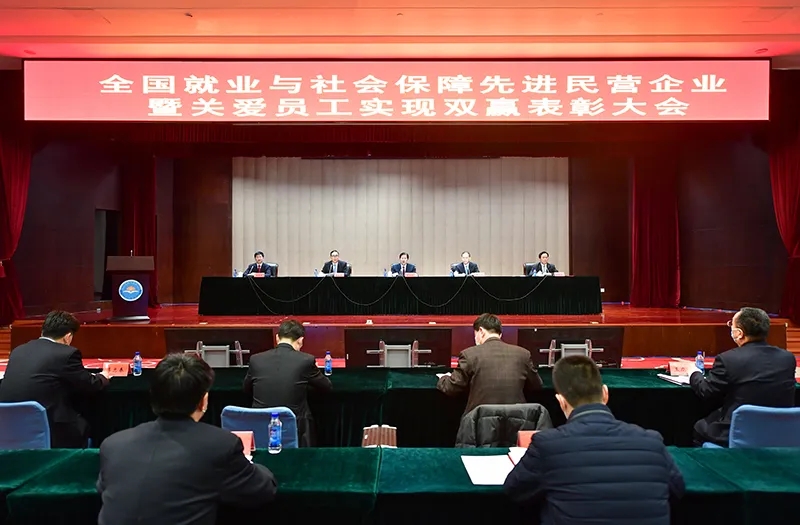 2月8日,由全国工商联、人力资源社会保障部、全国总工会三方联合主办的全国就业与社会保障先进民营企业暨关爱员工实现双赢表彰大会,以视频会议形式在京举行。