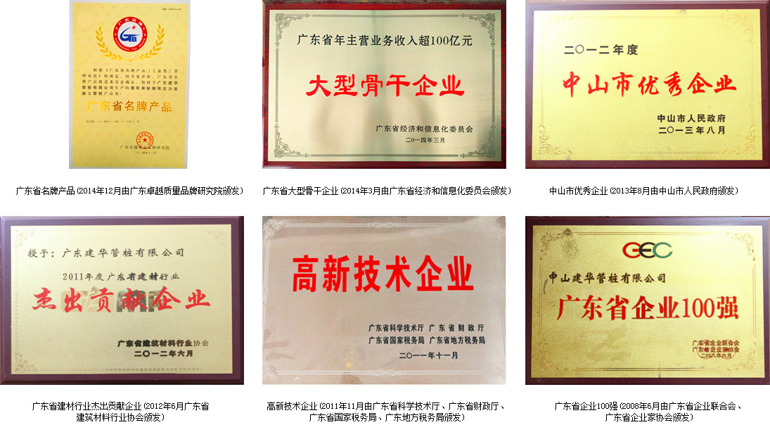 广东建华管桩有限公司隶属于建华建材集团,2007年成立于广东省中山市民众镇。公司主要生产经营钢筋混凝土预应力管桩、建筑用钢筋水泥构件(凭资质证经营)、PC钢棒、硅砂粉、超细矿粉,产品境内外销售;管桩技术及咨询服务。